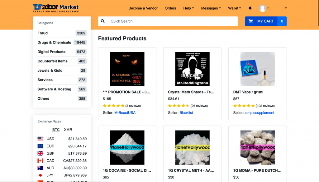 Tor2door Market — крупнейший на 2022 год западный криптомаркет. Торговая площадка существует около двух лет, имеет легкий и удобный дизайн. Много продавцов. На площадке ведется торговля как цифровыми, так и физическими товарами.
